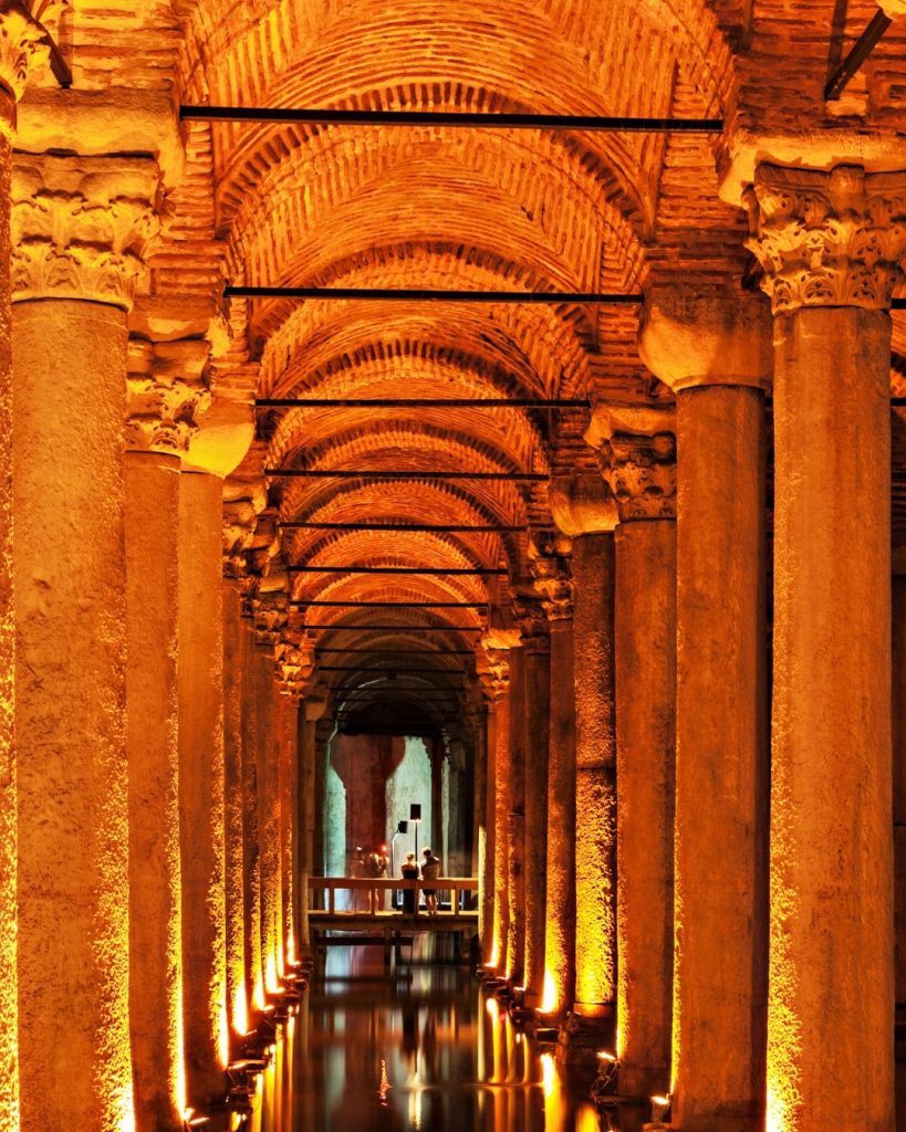 Descend into a mysterious Byzantine underground water reservoir, supported by a forest of ancient columns.